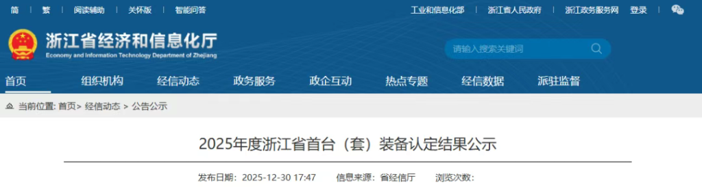 近日,浙江省经济和信息化厅正式公布